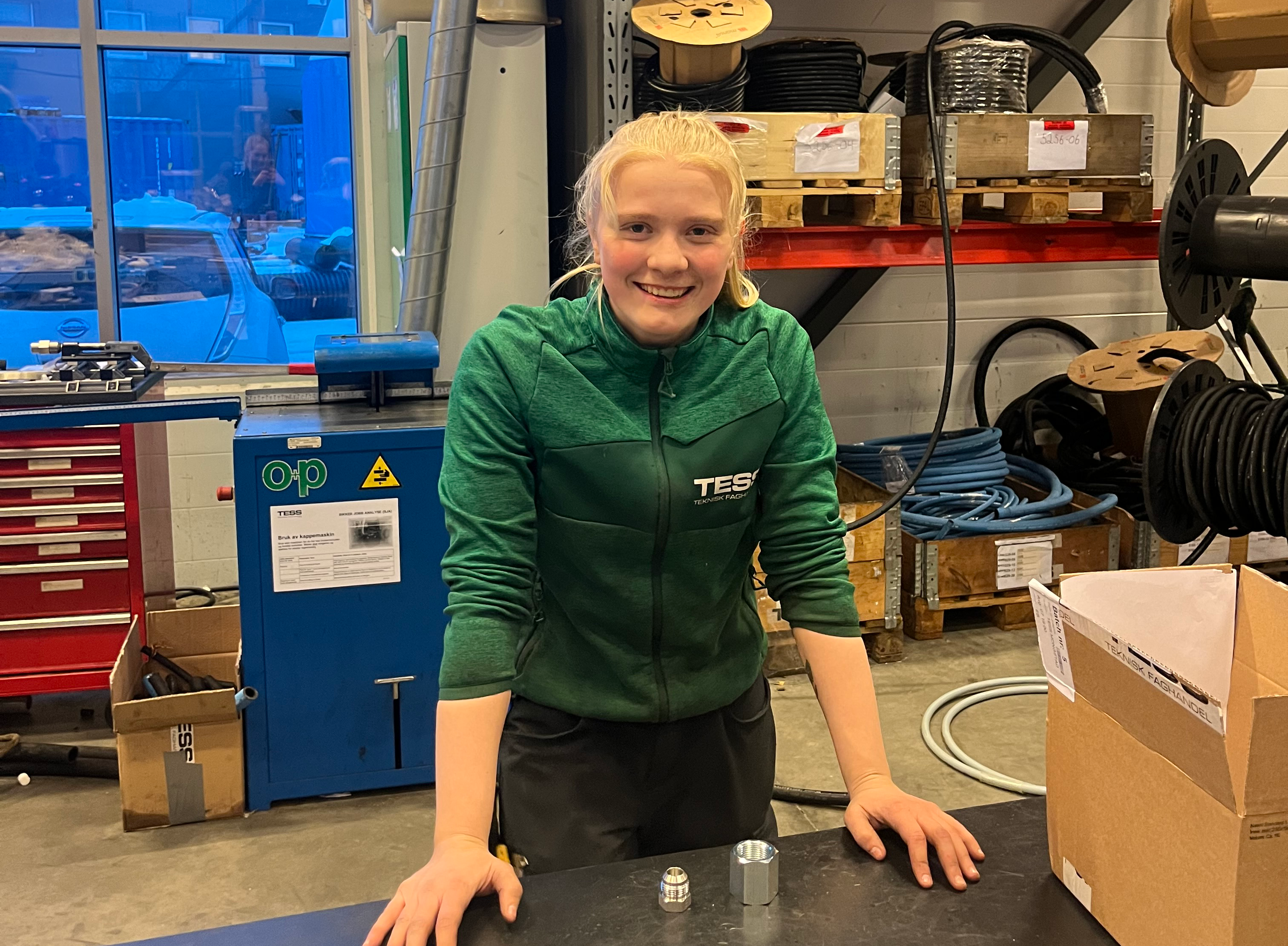 Frida er industrimontørlærling i TESS Vest. Hun har fått prøve seg på alt fra montering og pressing av slanger til trykktesting og oppkobling av flusheutstyr – hver dag bringer nye utfordringer og læringsmuligheter.